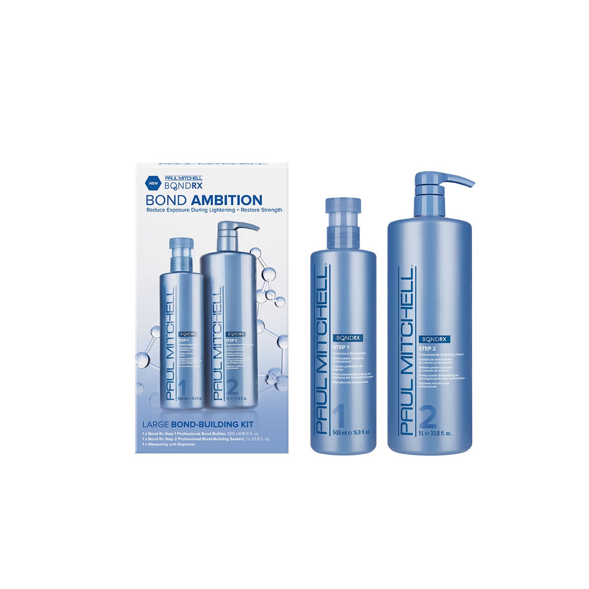 Reduce exposure during lightening and permanent color services + restore strength with this 2-step system.